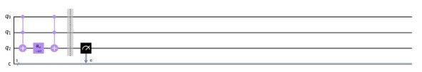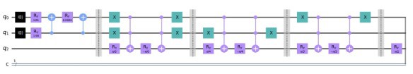 Дунд буй дөрвөн хэсэгт X хувиргалтууд нь (номин цэнхэр өнгөтэй) q0 ба q1 кубитүүдийг шаардлагатай үед эргүүлж, хяналттай Ry хувиргалтуудыг өдөөж, q2 дээр идэвхжүүлж байна.